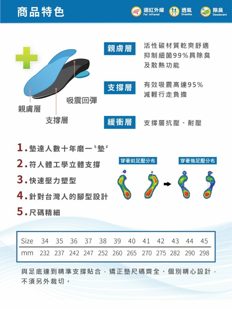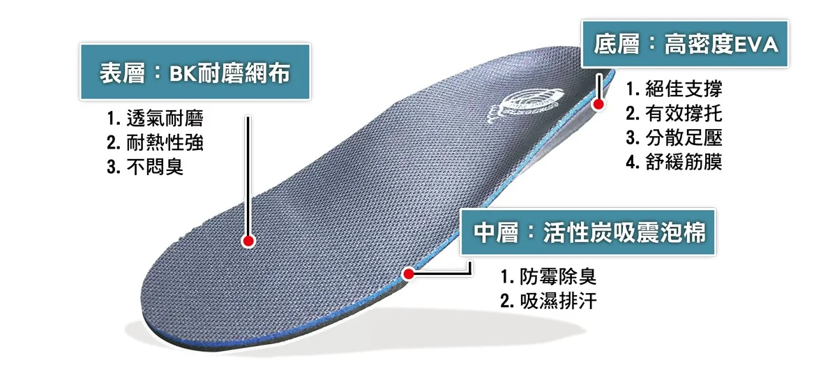 .厚度最薄,適合放入各種鞋款